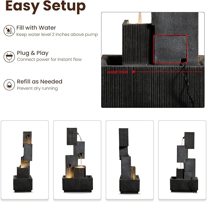 - PRE-SALE,AFTER-SALE - The garden fountain is the perfect addition to your home decor. If you have any questions about the outside water fountain,such as product consultation,technical support,missing parts,damage,etc.,we have a professional team to serve you and solve it.