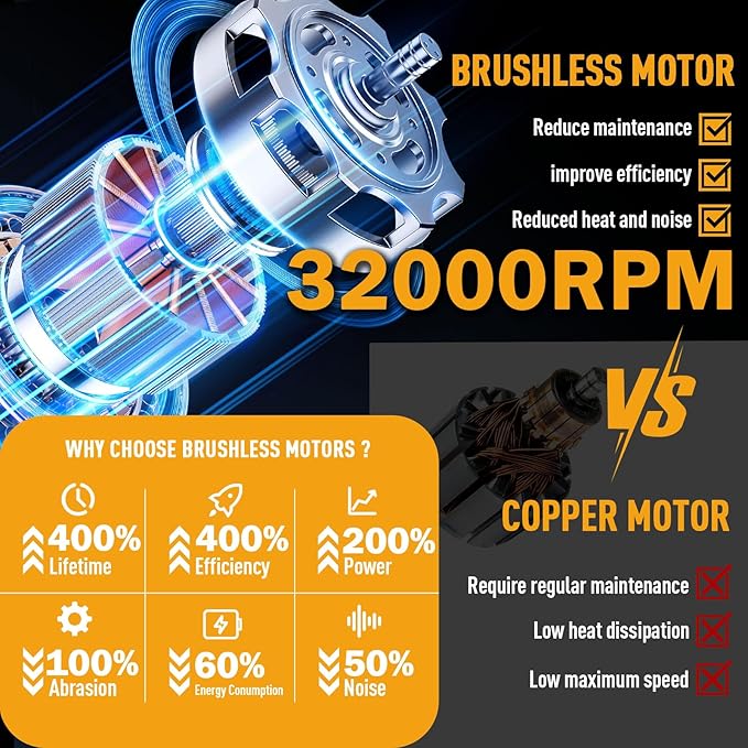 - 【Advanced Axial Fan Technology & High Performance Brushless Motors】:Sihuird leaf blower uses high efficiency brushless motor, maximum setting 32000RPM, with advanced axial fan technology, it provides larger air volume and more heat dissipation than traditional centrifugal fans. And equipped with 12 turbine blades and turbo charging function, which provides higher airflow. Air volume and wind speed up to 680 CFM and 190 MPH.