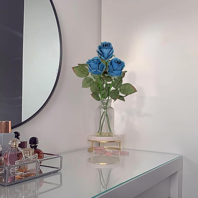 Artificial Realistic Roses Blue Flowers 24" Real Touch Silk Roses Bouquet Long Stems Rose Fake Roses Decor for Home Party Wedding Table Centerpieces Roses Realistic - 5 Pcs