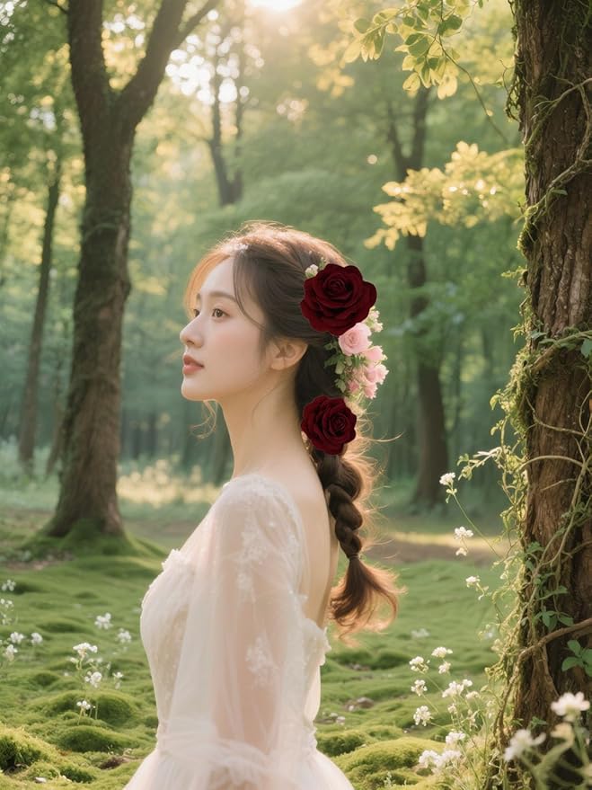 - The Material Of The Rose Head: The artificial burgundy rose flower head is handcrafted and made of durable and soft velvet material. It has a bright color and imitates the edges of real rose petals, looking natural and beautiful
