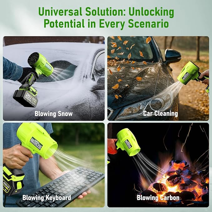 - 【Unmatched Performance in Its Class】This portable brushless turbine motor leaf blower dust cleaner has an amazing speed of up to 580000 revolutions per minute, and its blowing power is 2800G, which can complete tasks faster and more efficiently.Leaf blower cordless allows you to take care of your garden and yard more efficiently, and say goodbye to the trouble of bending down to rake fallen leaves and back pain.