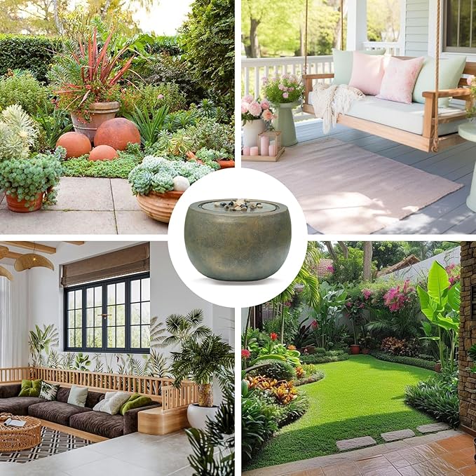 - GARDEN RESIN FOUNTAINS - Elevate your space with the unique Spherical bubbler fountain outdoor. Crafted with a faux concrete cement finish, this outdoor waterfall fountain adds an artistic touch to your surroundings.