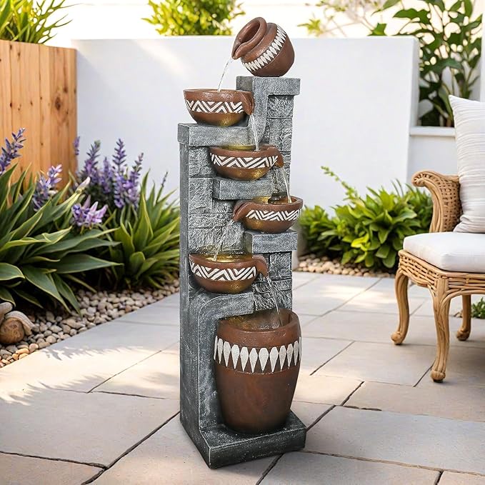 - Captivating Day & Night LED Display: Integrated LED lights highlight the flowing water and intricate pottery-inspired design after dark, while natural tones and layered cascades offer serene, earthy charm during the day.